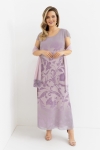 Długa, elegancka suknia na specjalne okazje w komplecie z szalem. Uszyta z szyfonu na lekkiej podszewce. Rękawki rozkloszowane nie krępują ruchów. Głęboko okrągły dekolt zachęca do założenia dyskretnej biżuterii. Suknia ma piękny, kwiatowy deseń w delikatnych odcieniach różu i fioletu. Bardzo kobieca i romantyczna. W tej kreacji z pewnością nie zostaniesz niezauważona.