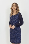 - Materiał: elastyczna tkanina we wzór, elastyczna podszewka, rękawy szyfonowe.
